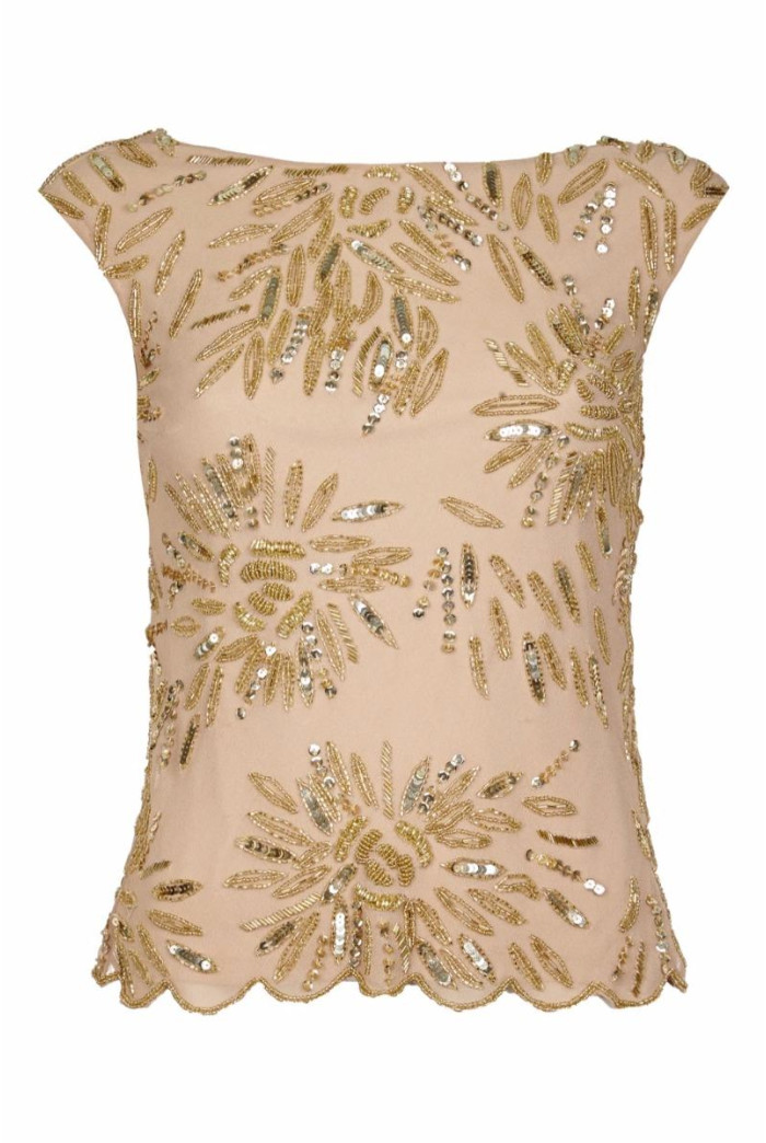 Like a golden burst of fireworks, the beadwork on this Dahlia Embellished Cowl Back Neck Top in Blush Gold is a spectacular wonder. Neutral enough to work with any trouser combo but studded with so many sequins to keep things dazzlingly dressed up, this gold beaded top is ready for action in response to any party invite!