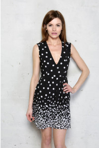 This black 50s style dress from Lavish Alice is a classic prom style shape, with V-neck and pleated skirt. The skirt has a black silk feel under layer and it fastens at the back with a concealed zip. It has a very light check pattern to the material and features a white leopard and polka dot spot print.