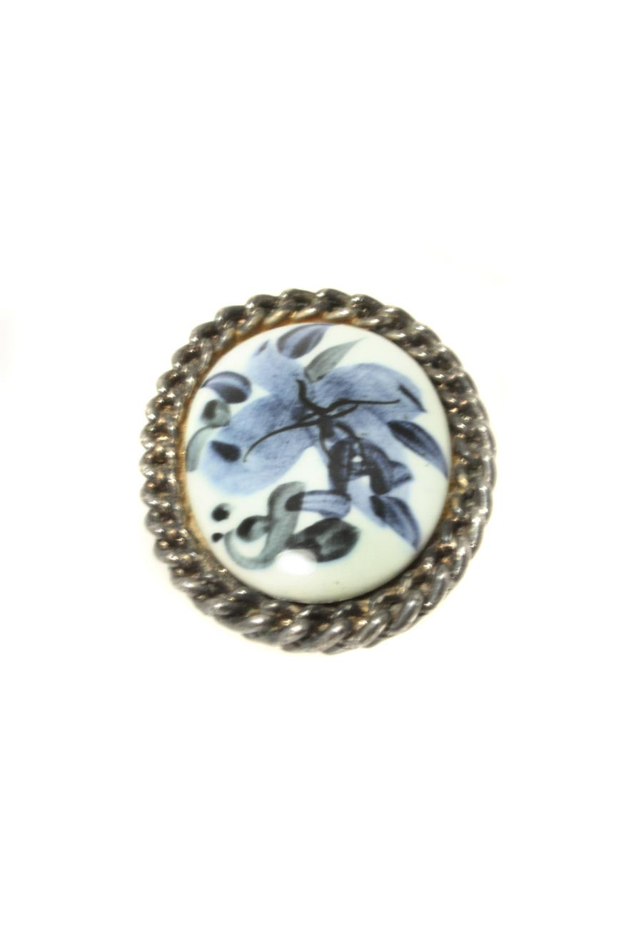 Floral prints come back into fashion year after year, and we just love this vintage Exquisite brooch which proves you can work a flourish of floral into your outfit all year round. With a delicate blue flower framed elegantly in a metal, chain effect setting, this 1940s brooch is like wearing a miniature piece of art, delicately hand painted and in excellent condition, as vivid as the day it was made. Exquisite brooches are highly collectable, with this piece in particular being part of a wider collection of cameo style flower illustrations.