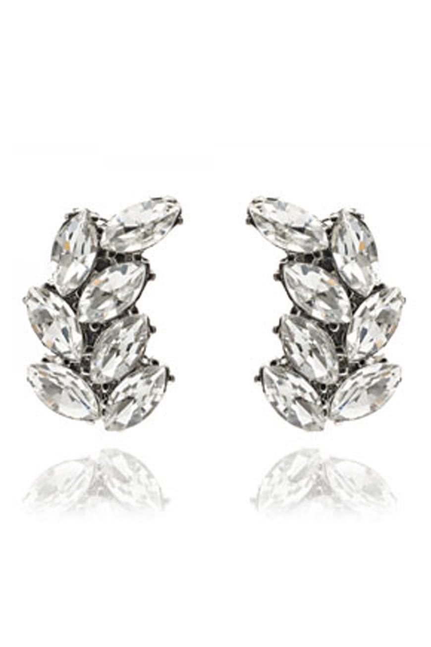 These silver crystal earrings by Lovett and Co feature a curved tear drop design. They have a clip on fastening and are silver plated.